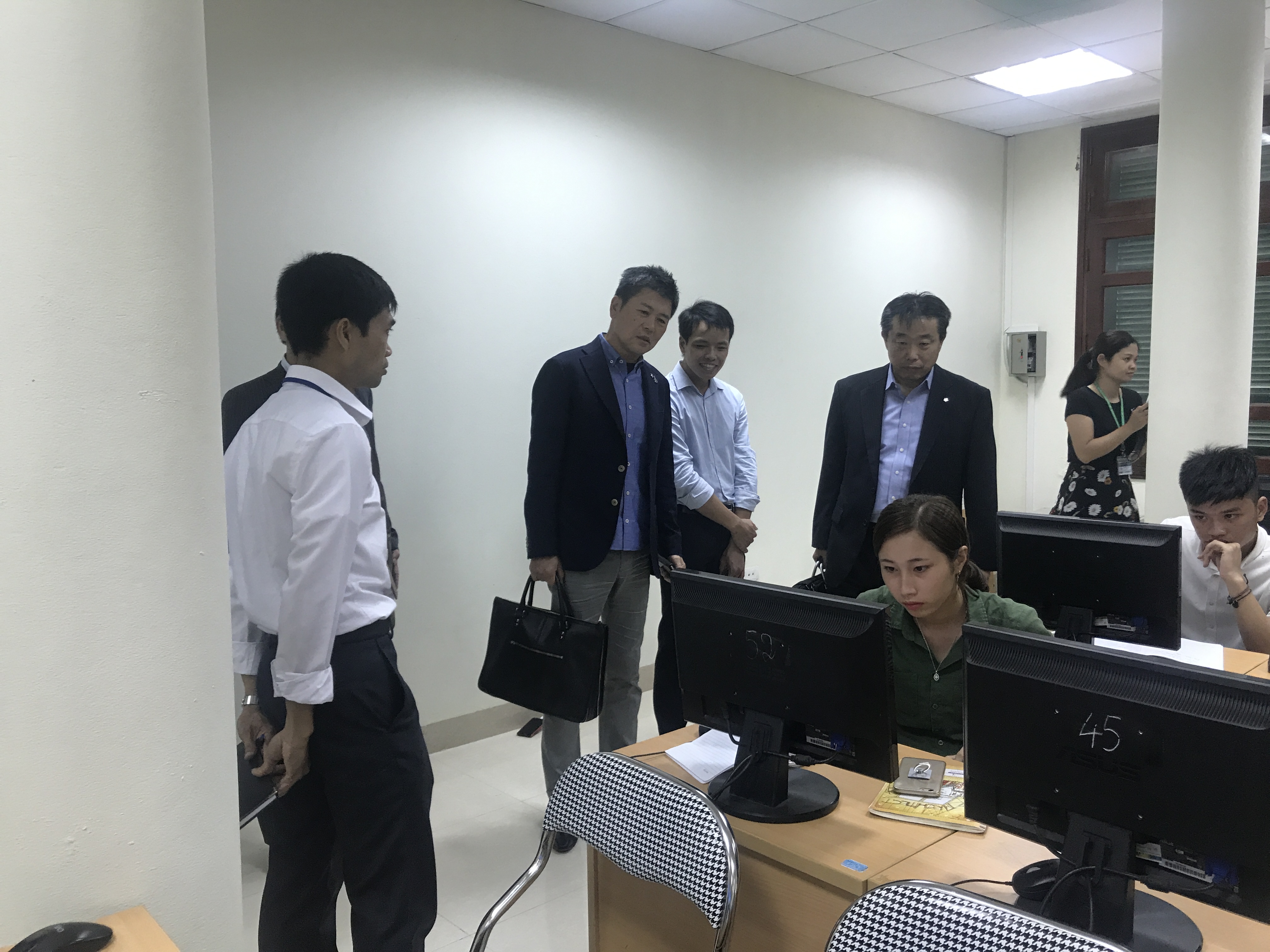 Đại diện công ty Human đã đi thăm các phòng thực hành của khoa Công nghệ thông tin nhằm tham quan cơ sở vật chất, điều kiện thực hành của các em sinh viên. Các em sinh viên khi biết được mục đích chuyến thăm của đối tác Nhật Bản tỏ ra rất hào hứng với cơ hội thực tập và việc làm trong tương lai.