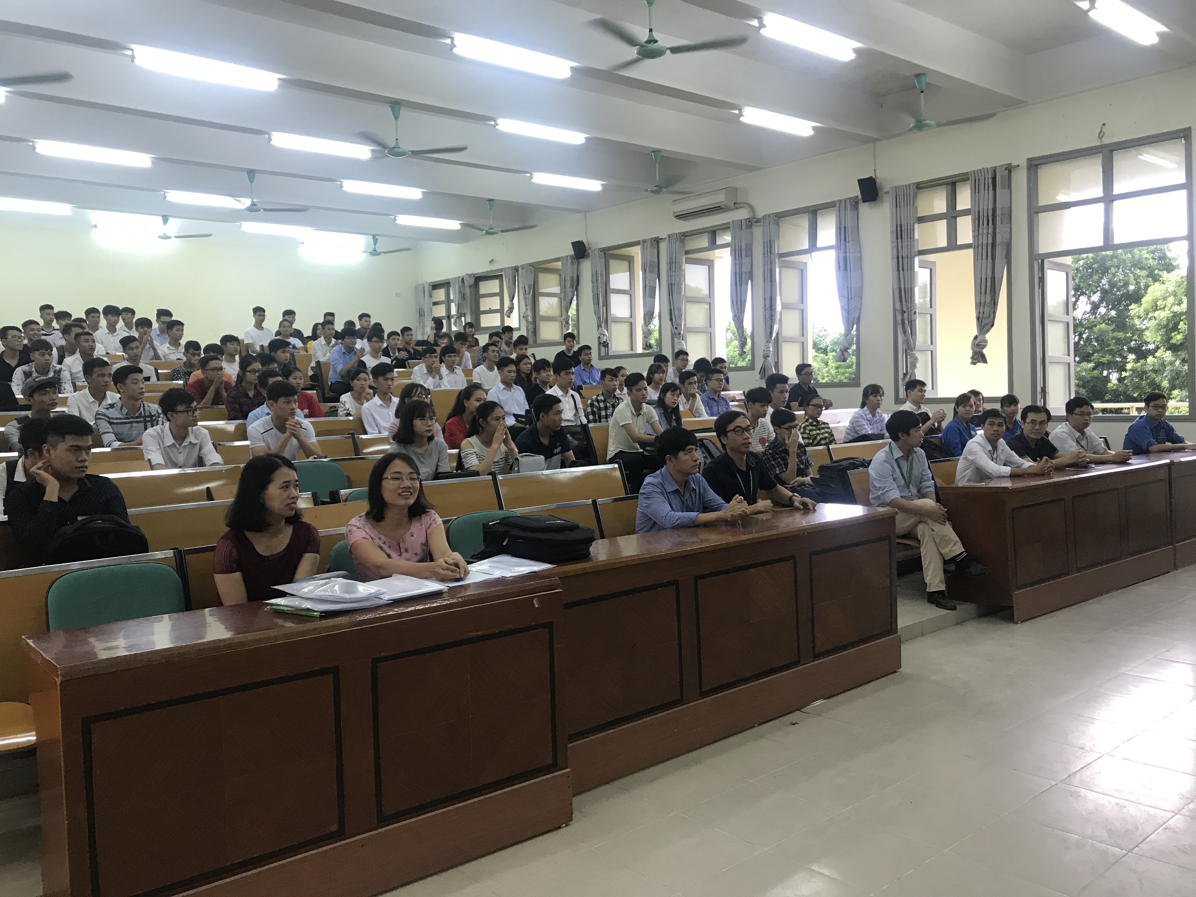 Mở đầu buổi gặp mặt, TS.Trần Đức Quỳnh đại diện cho Chi uỷ – Ban chủ nhiệm Khoa phát biểu khai mạc chào mừng. Thầy đã có những chia sẻ rất chân thành và tâm huyết với các em tân sinh viên những kinh nghiệm, định hướng học tập và truyền cho các em thêm động lực quyết tâm bắt đầu năm học mới. TS. Phạm Quang Dũng giới thiệu tổng quan về chương trình học và các chuyên ngành của khoa. Theo hướng học thuật, chương trình đào tạo 4 năm gồm 3 chuyên ngành: Công nghệ phần mềm, Công nghệ thông tin và Hệ thống thông tin; theo hướng nghề nghiệp POHE, chương trình đào tạo 5 năm gồm 3 chuyên ngành: Công nghệ phần mềm, Mạng máy tính và web, Toán tin ứng dụng, giúp các em tân sinh viên hiểu hơn về các chuyên ngành và sớm định hướng chương trình học phù hợp cho mình.